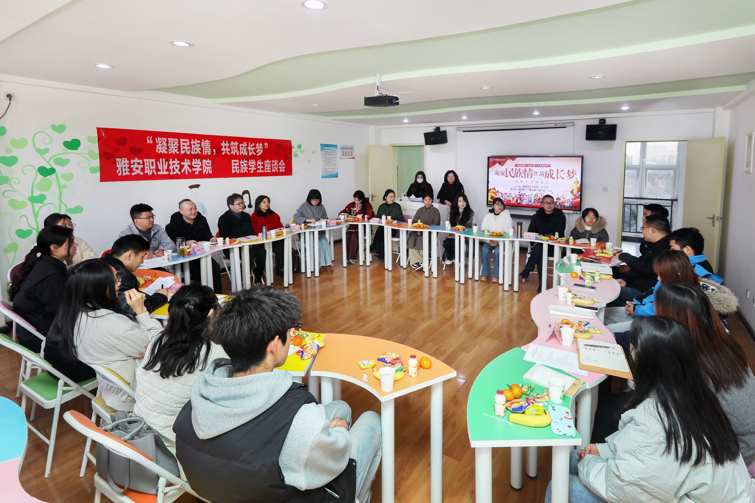为深入推进民族团结进步教育,关心关爱民族学生成长,11月27日,“凝聚民族情,共筑成长梦”民族学生座谈会在青年路校区心理健康中心举行。党委常委、副校长陈冬冬出席会议并讲话,学生处、团委相关负责人、各二级学院党组织(副)书记、辅导员代表及各学院民族学生代表共计35人参加座谈。座谈会由学生处副处长张晓惜主持。座谈会上,护理学院辅导员罗才勇结合自身工作经历,分享了陪伴与引导民族学生成长成才的心得体会。在自...