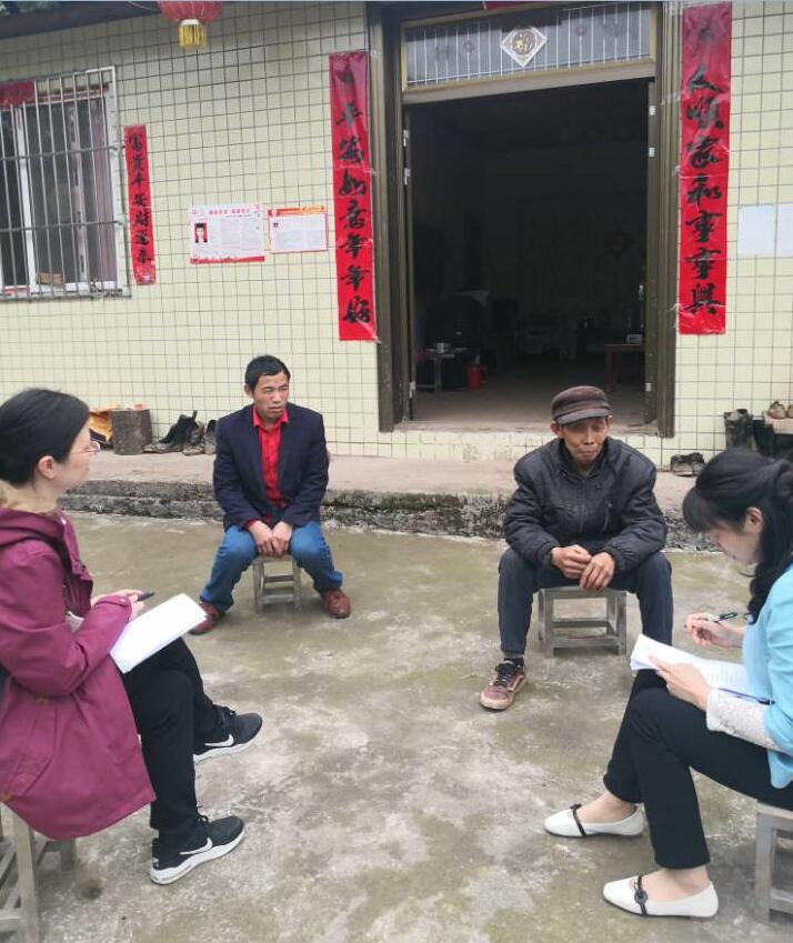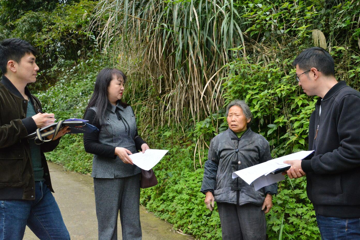 入户路上遇到正打好猪草回家途中的3组贫困户杨德香,工作组同志询问其身体健康、医疗保障、田间种植、家禽养殖等情况。杨德香说道“我家现在条件好多了,每个月都能领到养老金,病也看的起了,猪养起了,娃娃也能挣钱了,政府、学院、还有村里都没少为我家的事操心,真是太感谢你们了!”大家鼓励杨德香要把握好春耕时节、不误农时,用辛勤劳动持续增收致富,把日子过得越来越好。在3个多小时入户随访过程中,工作组与贫困户村民亲切交谈,将村民们反馈的意见建议和问题逐项记录,并将整理列出问题清单及时反馈。