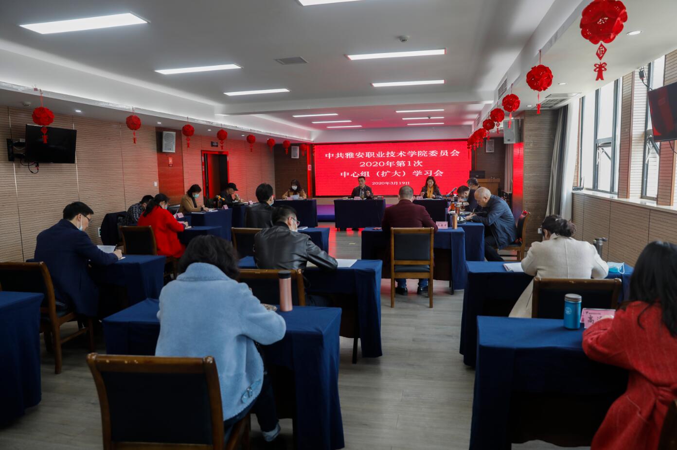 3月19日下午,学院党委在青年路校区培训中心集雅厅会议室召开2020年第一次党委中心组(扩大)学习会,深入学习贯彻习近平总书记有关统筹推进新冠肺炎疫情防控系列重要讲话精神,进一步提高认识、统一思想,明确责任、强化措施,确保统筹抓好学院疫情防控和教育教学工作。学院党政领导班子成员、党委职能部门负责人、党总支(直属党支部)书记、副书记参加学习。学习会由党委书记李春模主持。