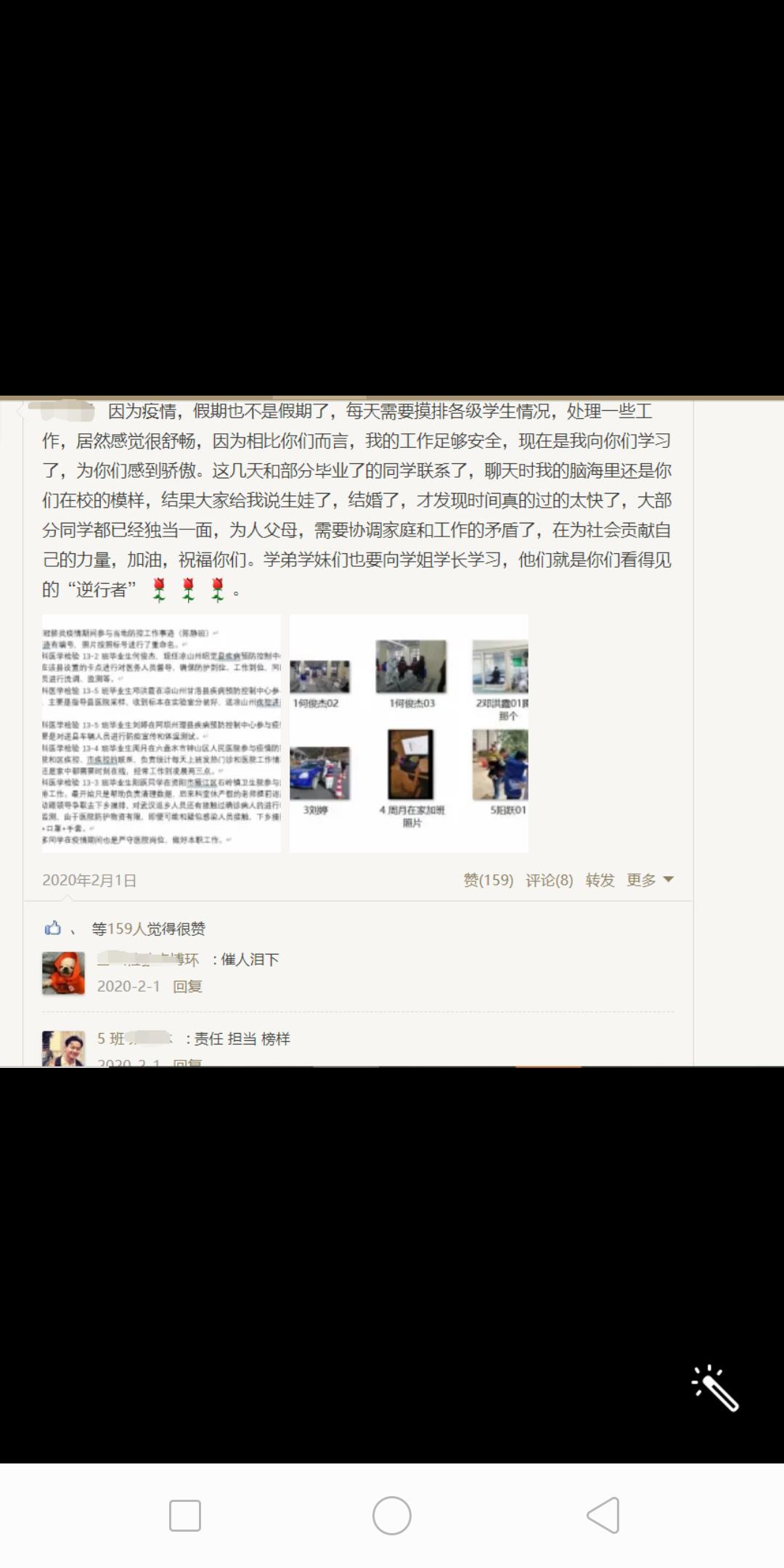 全体辅导员克服种种困难,纷纷展开网络“云思政”教育。面对来势汹汹的疫情,辅导员们以高度的责任感主动承担、相互补位,让人动容。他们坚信,隔离病毒但是不会隔离对学生的爱。