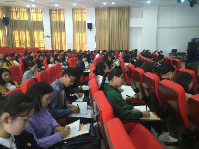 【本网讯】为深入学习宣传贯彻党的十九大精神,让全院青年团员在实现中国梦的伟大征程中贡献青春力量,11月7日下午,学院“不忘初心跟党走 青春共筑中国梦”第四期团课培训班开班典礼在青年路校区学生活动中心举行。院团委书记刘永恩,各系团总支书记、副书记等老师参加了开班典礼。院学生会干部、各系学生会主席团、2017级各班团支部书记共163名同学参加典礼并接受培训。会议由院学生会副主席李婉莹主持。