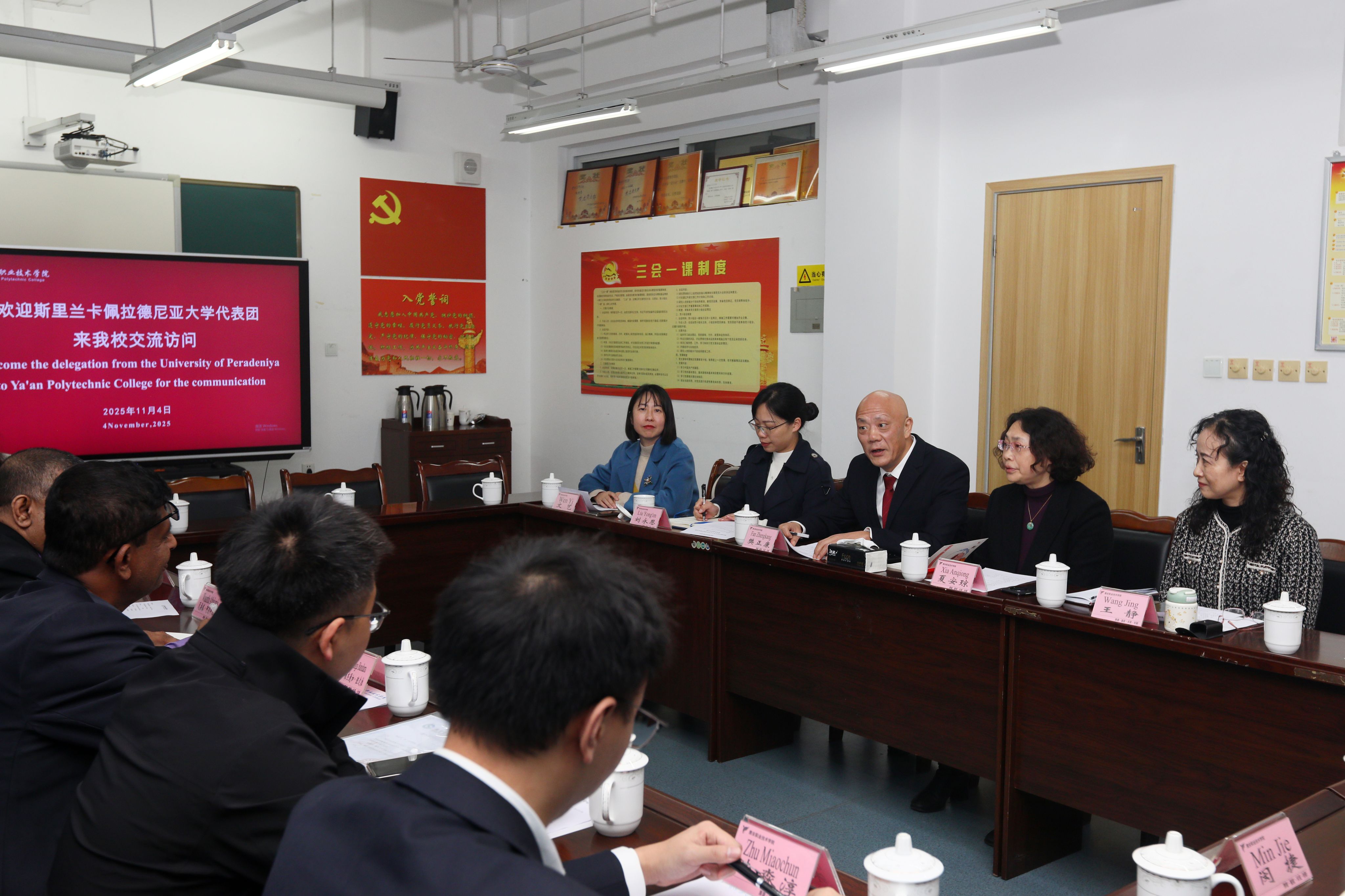 樊正康在致辞中对佩拉德尼亚大学代表团的到来表示热烈欢迎,并详细介绍了雅安市区位特征与文化名片、学校发展历程及国际交流合作成果。他表示,学校2018年承办首届中国—南亚青年领袖交流活动及斯里兰卡文化周,护理学院教师应邀参加佩拉德尼亚大学“国际护理大会”并作大会交流发言,成为两校交流的开端。近年来,我校招收斯里兰卡籍留学生37名,为深化两国间的国际化人才培养提供了实践案例。随后,雅安市人民政府与斯里兰卡马图加马市签署双城友好合作关系备忘录,进一步拓展了双方合作空间。期待双方能以此为契机,推动既有合作共识落地生根,携手培养更多具备国际视野的高水平专业人才。