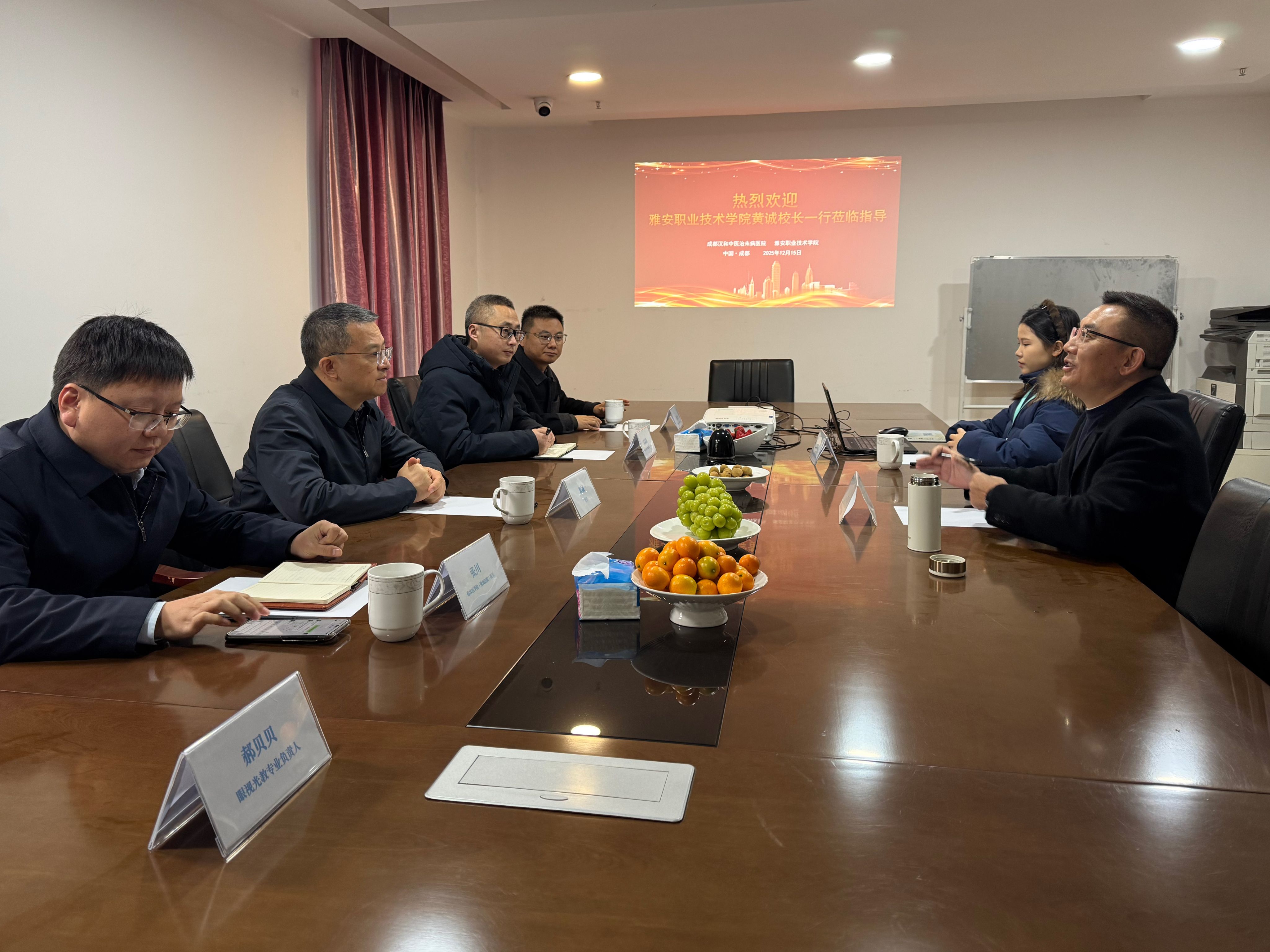 12月15日,学校党委副书记、校长黄诚率队赴四川唯高科技股份有限责任公司旗下的成都汉和中医治未病医院进行考察交流,实地走访医院各科室,了解各类康复理疗技术的具体应用与实践成效。党委常委、发展规划处处长梁大伟,临床医学院(附属医院)相关负责人随队考察。