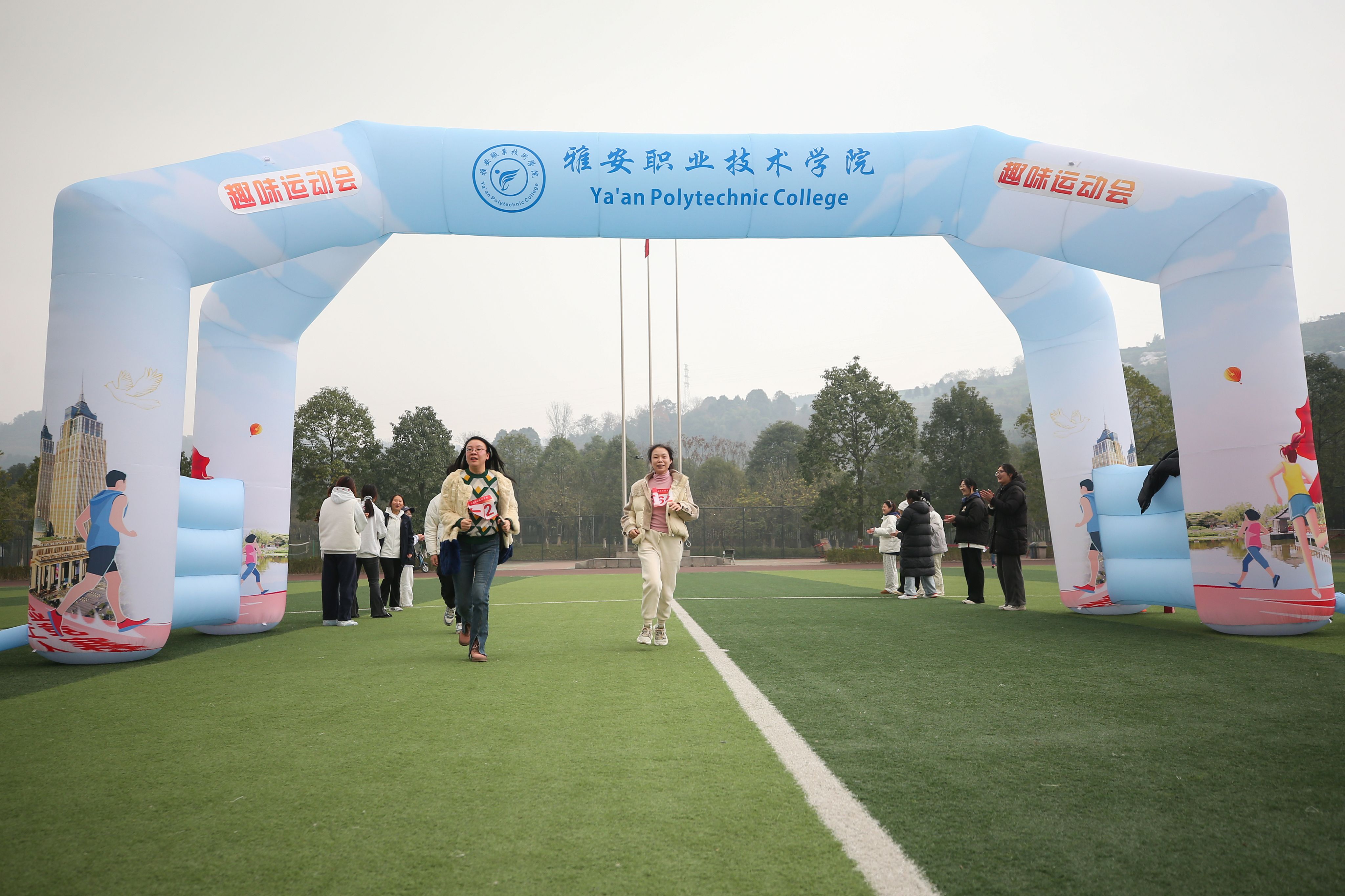 300余名教职工组成的12支代表队在庄严的国歌声肃立操场,黄诚校长代表学校党政向广大教职工致以亲切的新年的问候,并宣布:“雅安职业技术学院第二届教职工‘迎新年·庆元旦’环校健康跑暨趣味运动会开幕!”