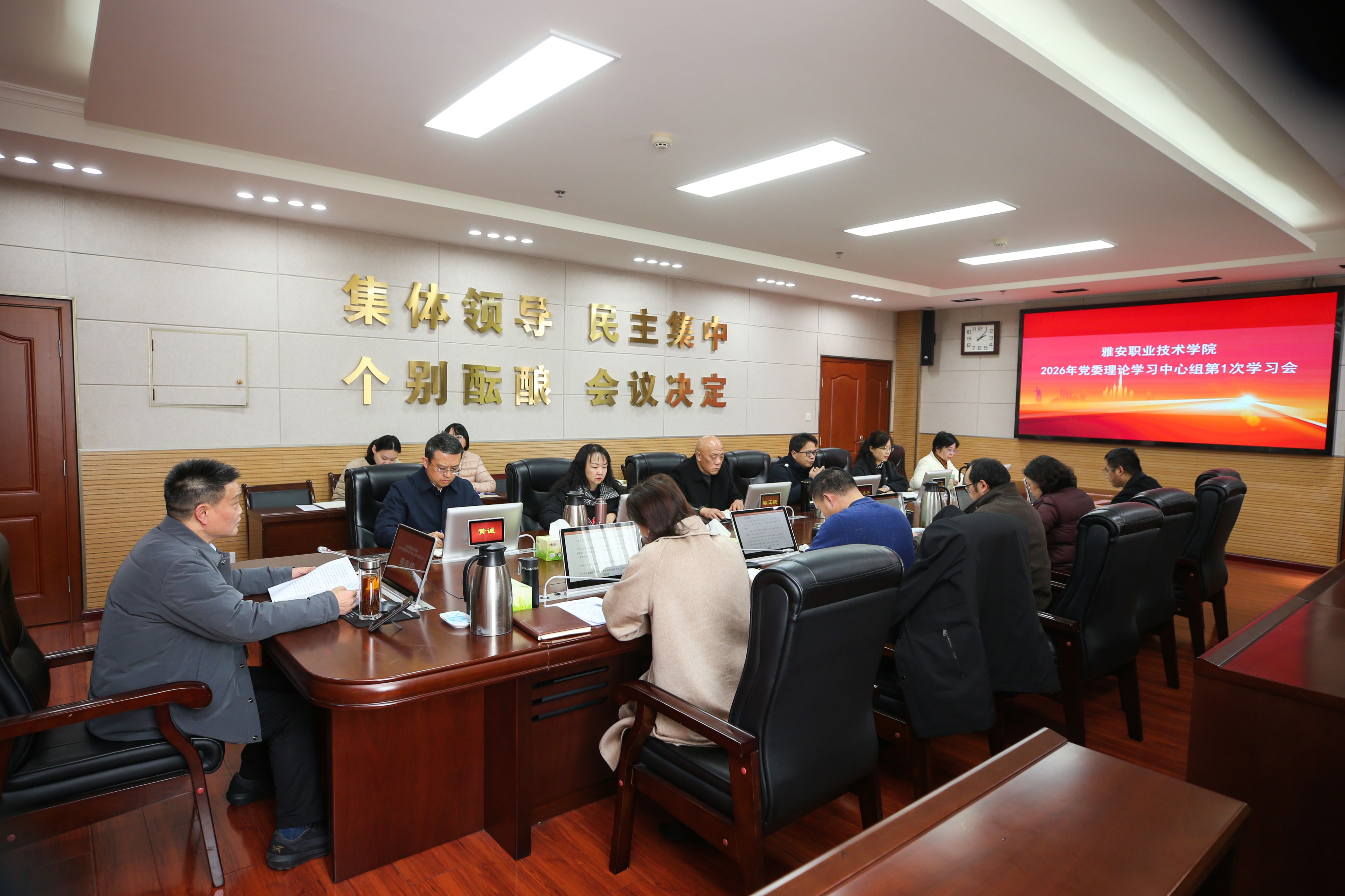 按照省委、市委的工作部署,1月27日下午,学校在经开区校区综合楼617会议室举行党委理论学习中心组第1次学习会。在前期个人自学的基础上,集中学习习近平总书记在中共中央政治局民主生活会和在二十届中央政治局第二十一次集体学习时的重要讲话精神、2026年全国教育工作会议精神及四川在全国教育工作会议上的交流发言内容;中共四川省委《关于锲而不舍落实中央八项规定精神推进作风建设常态化长效化的实施意见》和二十届中央纪委五次全会精神。进一步统一思想,凝聚共识,为高质量开好学校党委常委会2025年度民主生活会打牢坚实的思想基础。党委书记李春模主持会议并讲话。全体校领导、党委理论学习中心组成员参加会议。