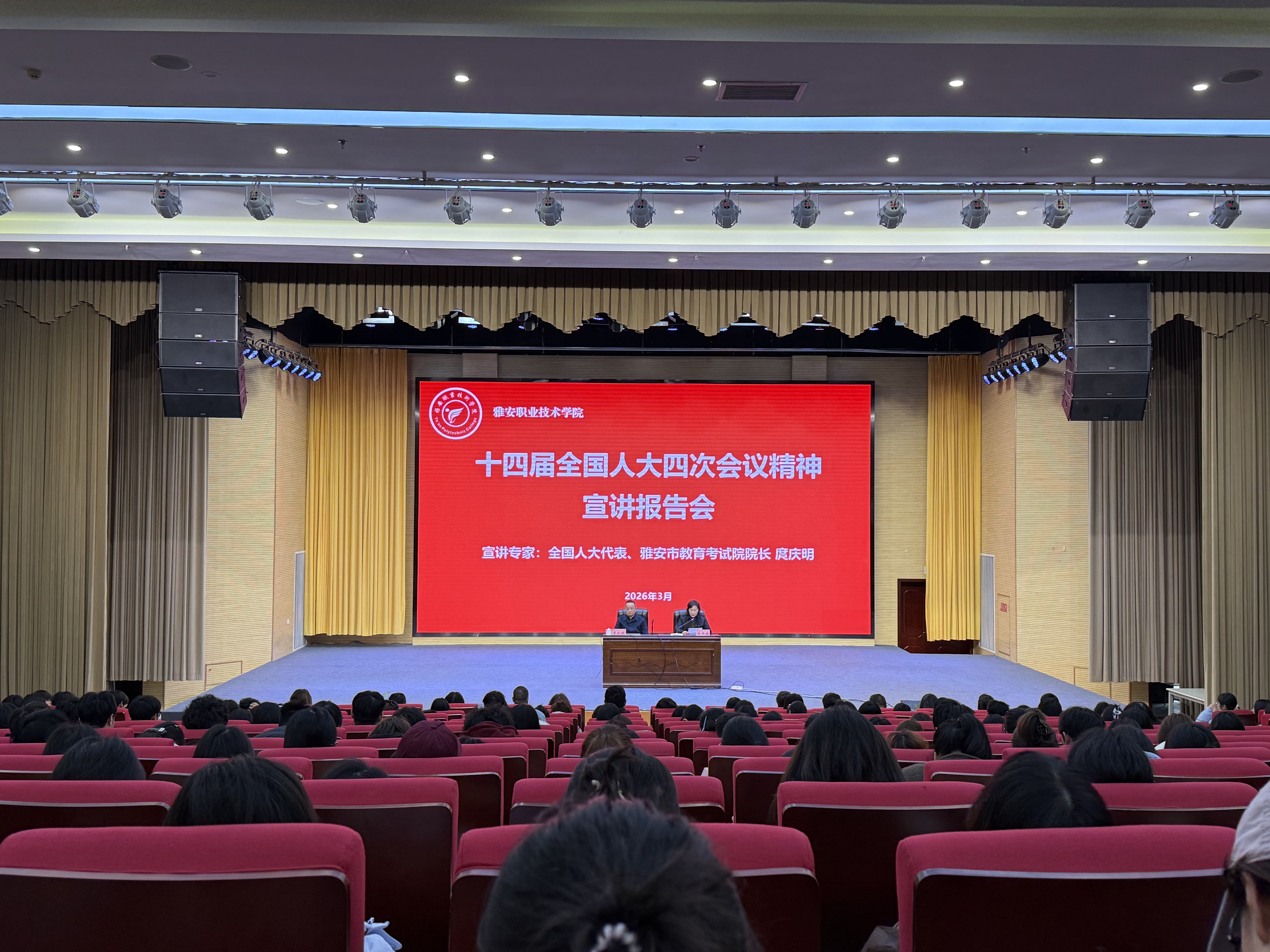 杨洪媛在总结讲话中指出,庹庆明代表的宣讲既是对全国人民代表大会精神的权威解读,也是一堂鲜活生动的“大思政课”。报告高屋建瓴、内涵丰富、深入浅出,兼具理论深度与实践温度,为师生领会大会精神提供了精准指导。她强调,此次宣讲实现了国家叙事与地方发展、青年成长的贯通,是推进“时代大课堂”与“校园小课堂”深度融合的重要实践。杨洪媛希望全校师生要胸怀“国之大者”,将个人成长融入国家发展,坚定技能报国、扎根雅安的志向;要锤炼过硬本领,在职业教育中精技强能,于平凡岗位追求卓越;要守护身心健康,德技并修,实现全面发展。要求全体教职工,特别是党员干部与思政工作者,以此次报告会为契机,将全国两会精神融入教育教学,推动“大思政”格局走深走实,用党的创新理论铸魂育人,共同为建设服务地方发展的高素质技术技能人才培养高地而努力奋斗。