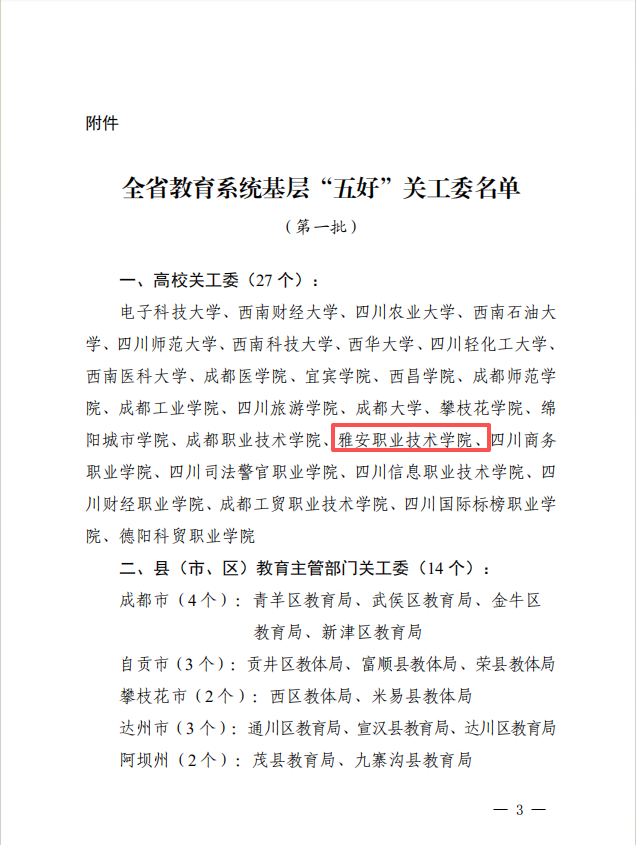 近日,四川省教育厅关心下一代工作委员会公布全省教育系统基层“五好”关工委(第一批)认定名单,我校成功入选,荣获首批“五好”关工委称号。