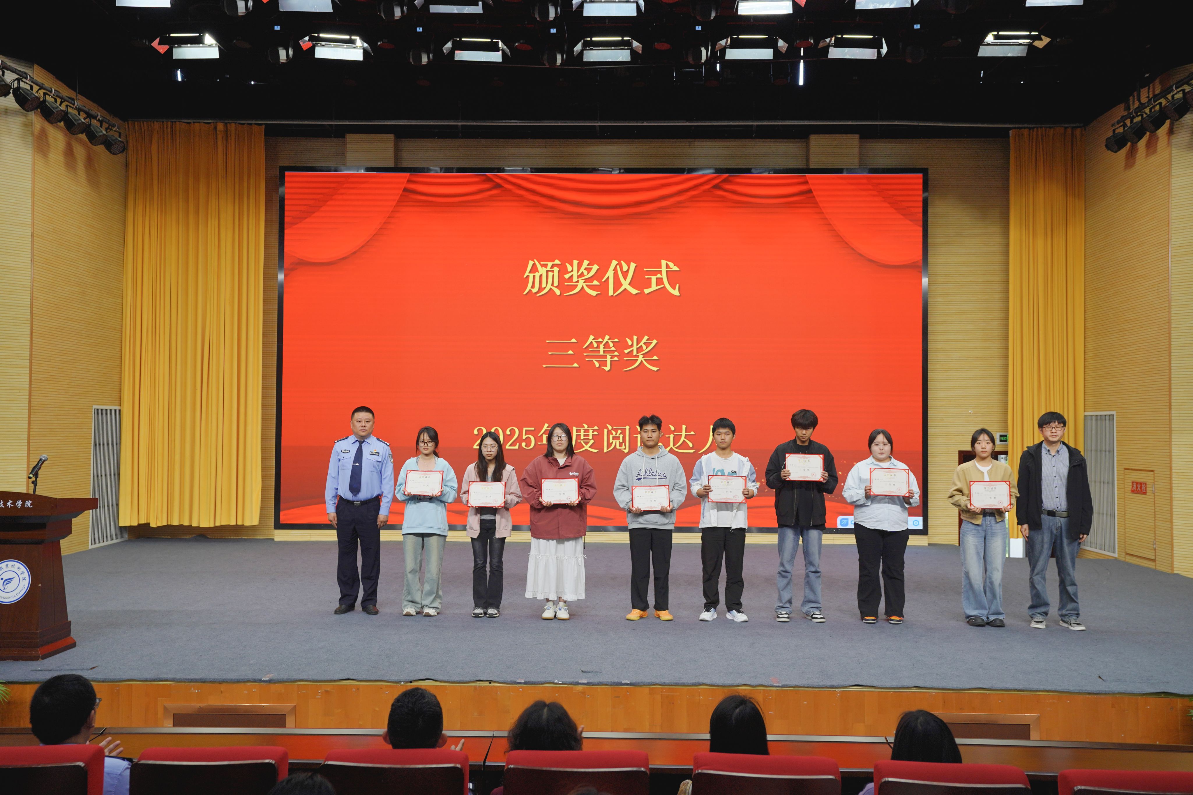 启动仪式上,学校与四川省雅安监狱签署了《图书调拨与共建协议》,双方将在图书资源共享、文化共育等领域展开合作,共同书写校地合作、书香共建的崭新篇章。活动现场,还对2025年度“阅读达人”及优秀组织单位进行了表彰,师生代表先后分享阅读感悟。