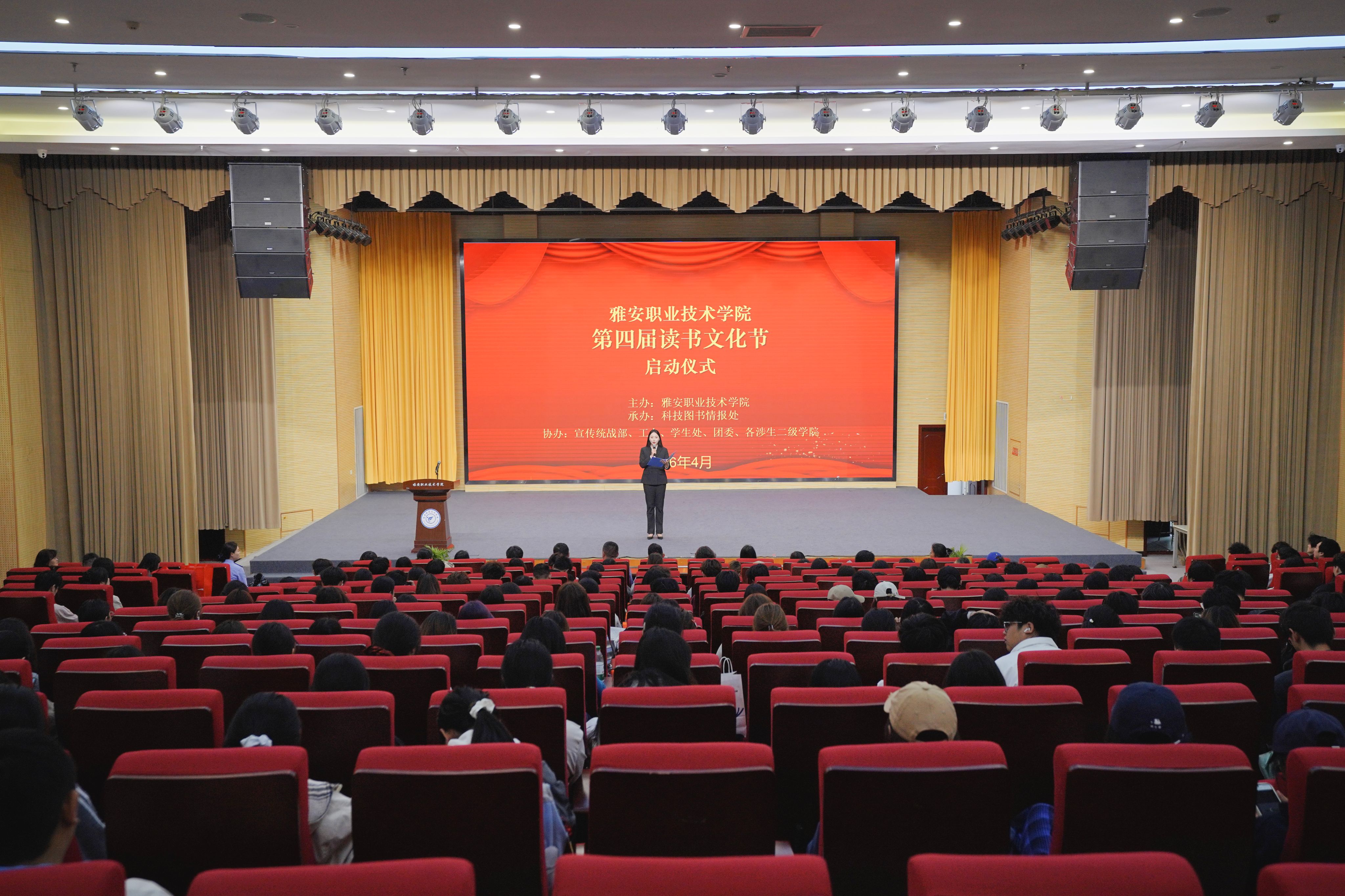 4月23日,我校第四届读书文化节启动仪式在经开区校区聚雅厅举行。本届文化节以“品经典书香,承雅州根脉,启笃行新知”为主题。学校党委常委、宣传统战部部长、工会主席夏安琼,四川省雅安监狱党委书记、监狱长沈焱出席活动。学校相关部门负责人、师生代表及雅安监狱嘉宾共200余人参加。