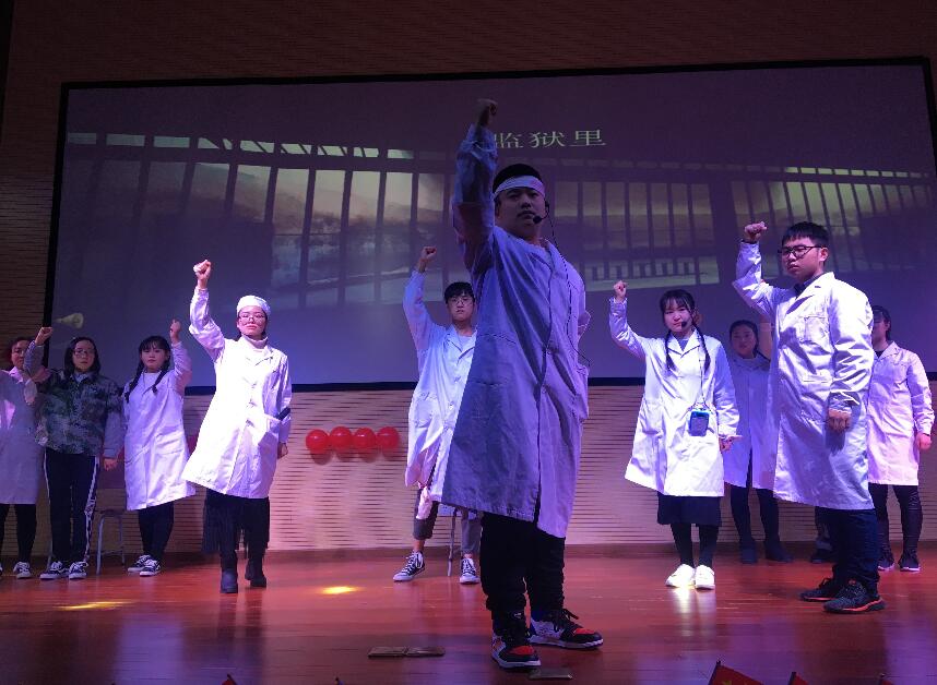 【本网讯】为进一步增强当代大学生的社会责任感,践行社会主义核心价值观,增强爱国主义教育实效性。由临床医学院学生会主办、基础医学院学生会组织部承办的“怀国史树新风展新采 ”一二九爱国话剧比赛于12月9日在青年路校区实验实训楼二楼多功能厅正式开幕。基础医学院党支部副书记张翅老师、院团委王昌宇老师、基础医学院团总支书记赵武博、临床医学院团总支副书记张晓惜、辅导员刘琴、杨芳老师莅临现场指导,表演团队及观赛同学近300余人。