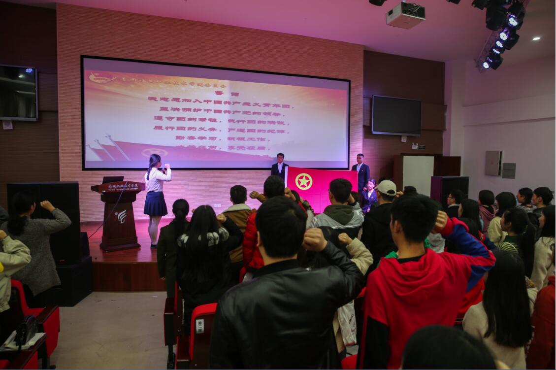 大会在奏唱团歌《中国共青团团歌》中拉开帷幕。团委组织部部长高川程老师宣读了《共青团雅安职业技术学院委员关于举办第六期团校培训班的通知》。随后,全体成员在鲜明的团旗下重温入团誓词,让团员们更加深刻地领悟了团员的责任和使命,自觉增强组织性、纪律性。团校学员代表陈怡欣同学代表全体学员承诺,将好好珍惜团校的学习机会,提升自己的理论素养、思想水平,更好的发挥模范带头作用。