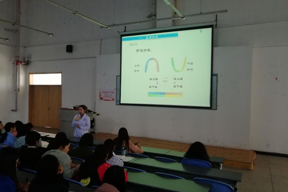 佘晓晴系统全面的向介绍了口腔护理的有关知识和常用技术等,与同学们讨论了种牙、造牙等技术。马千浩老师讲述了口腔基础知识、口腔常用药物和口腔内科常用材料及调拌材料,同时也介绍口腔修复常用调拌材料、口腔有关的器械、仪器和口腔有关辅助检查等内容。