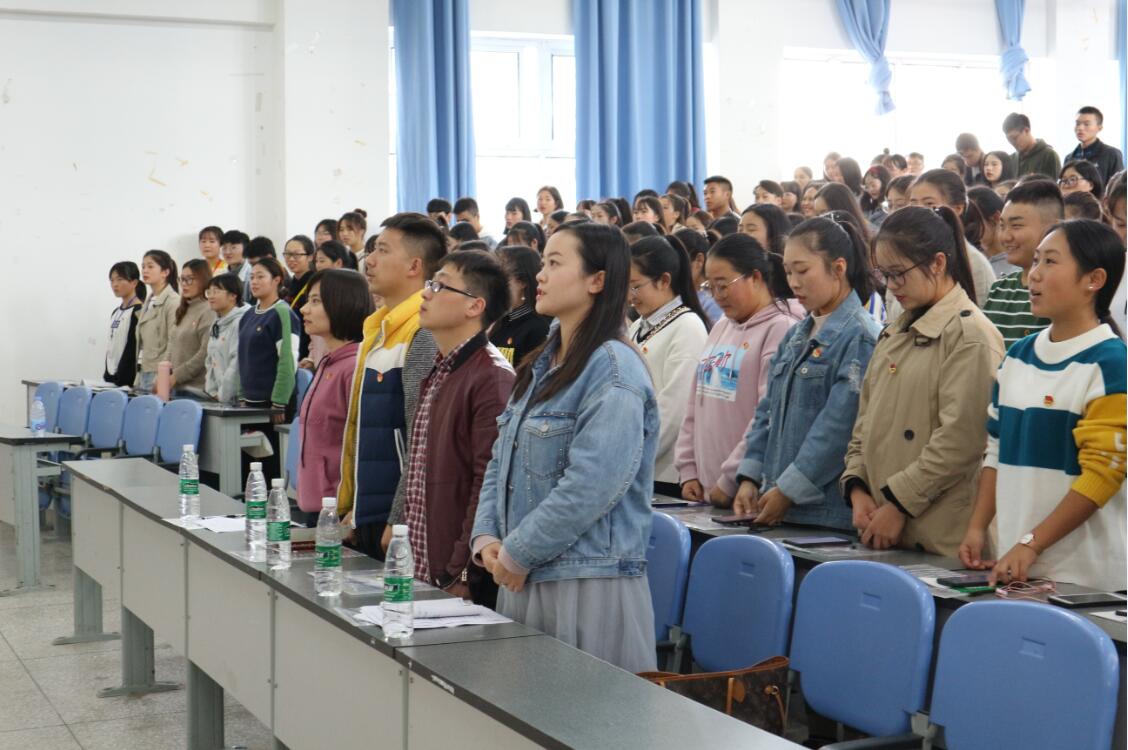 会议在团歌中拉开序幕,万黎老师对本次团课的规章制度及相关要求做了详细说明,希望同学们以身作则,认真学习,学有所得。学生代表张书溢同学发言,号召各位青年团员要在共青团的引领下深入学习贯彻习近平新时代中国特色社会主义思想和党的十九大精神,和团的十八大精神,积极参与本次团课学习。随后,吴玉阳老师为同学们带来团课第一讲。