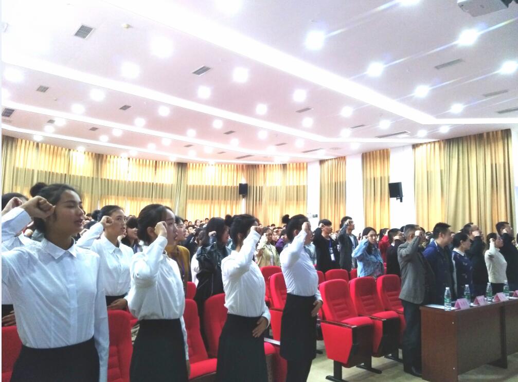 【本网讯】健康所系,性命相托。10月25日,由临床医学院主办,基础医学院协办的“宣医者誓言,树崇高医德”医学生宣誓大会在我院青年路校区实验实训楼二多多功能厅举行。基础医学院党支部副书记张翅、临床医学院党总支副书记李敏、临床医学院副院长庞嘉言、内科教研室主任马宜龙、基础医学院团总支书记赵武博、临床医学院团总支副书记张晓惜、基础医学院教师周卫敏出席大会,临床医学院学生会及各团支部代表共计300余人参加大会。