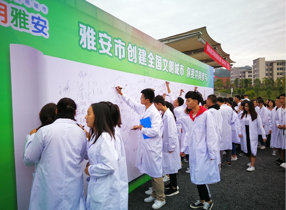 会上,我院学生代表宣读了雅安市创建全国文明城市争做文明市民倡议书。倡议每一位市民为创建全国文明城市,建设幸福雅安、文明雅安、和谐雅安、生态雅安做出应有的贡献。