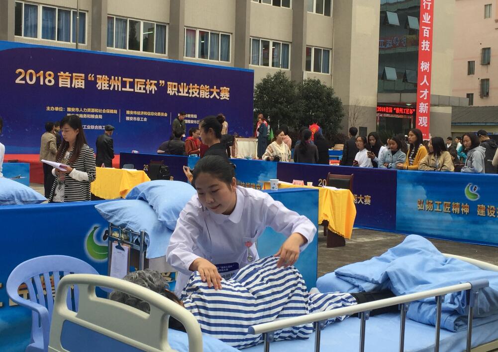 【本网讯】10月11日,由四川省雅安市人力资源和社会保障局、雅安市教育局、雅安市总工会等6个部门主办的2018首届“雅州工匠杯”大赛在雅安航空工业联合技工学校举行。我院护理学院衡倩老师和2017级助产2班李孜同学在任冬梅、向岚老师的带领下,参加本次比赛并分别荣获一个二等奖和一个一等奖。
