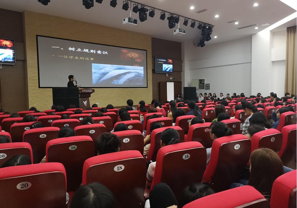 【本网讯】9月11日上午,旅游经济管理系请到学院的法律顾问、法律专家雷磊老师,在青年路校区实验实训楼多功能厅为420余名新生做了一堂内容丰富,对学生的在校生活具有实际法律指导意义的讲座。