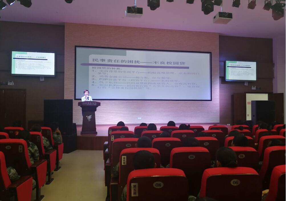 讲座中,文法官结合自身经历,用风趣幽默的语言介绍了自己的工作及中国法官等级、职能后,阐述了法律定义、宪法概念、法律责任、民事和刑事法律责任年龄等相关法律条款,重点通过一些典型校园案例详细讲解了故意伤害罪、抢劫罪、盗窃罪等相关内容,特别是对近年兴起的不良校园贷进行了重点解读,以多起“校园贷”恶性典型案件切入,结合“校园贷”的财务管理本质、校园贷辩证分析,提醒同学们要“理性消费,树立正确的消费观,远离滥贷,警惕风险”。