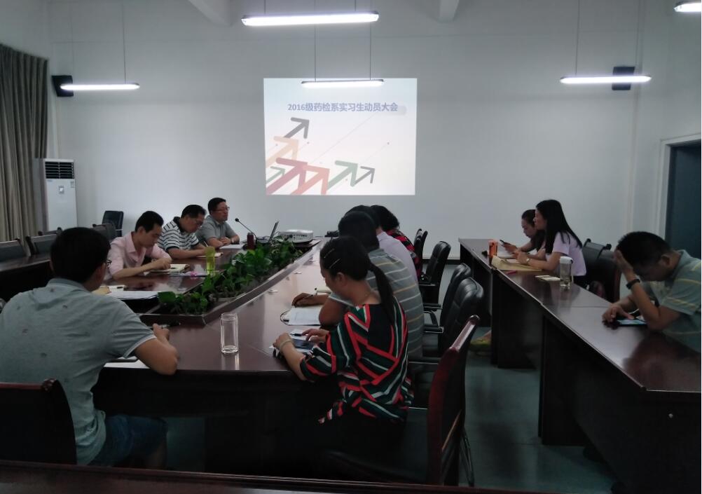 李成忠介绍了本次实习工作的基本情况—2018年药检系见习学生共586名,涉及实习单位60余家,就做好实习工作进行了具体安排部署,从实习管理规章制度、实习生注意事项、实习指导内容、安全和纪律等方面提出了明确要求。李成忠要求各实习班级辅导员、班主任及实习管理教师一定要在思想上高度重视,要加强对学生的监督指导,及时处理学生实习期间遇到的问题,做好与实习单位负责人、学院、实习学生之间的沟通与交流,确保实习工作的成效和学生实习的收获;辅导员、班主任老师要密切配合实习管理教师做好实习的动员工作,认真做好实习期间学生纪律、安全、卫生等方面工作,要按规范做好实习材料的整理、上交等工作。