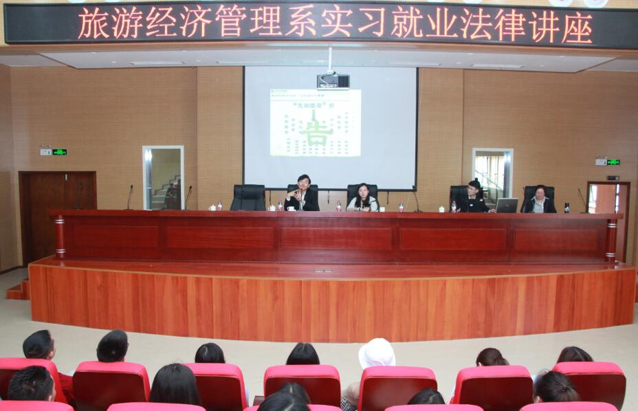 【本网讯】为提升学生实习就业法律意识,防范就业陷阱和骗局,4月17日,旅游经济管理系邀请成都现代物流职教集团法律顾问、四川印诺律师事务所公司事务部首席法律顾问杨继越律师来院开展了一场“就业大市场,我该懂什么?”的就业法律讲座。2016级物流管理、旅游管理、财务管理、茶艺与茶叶营销专业共计280余人参加了讲座。