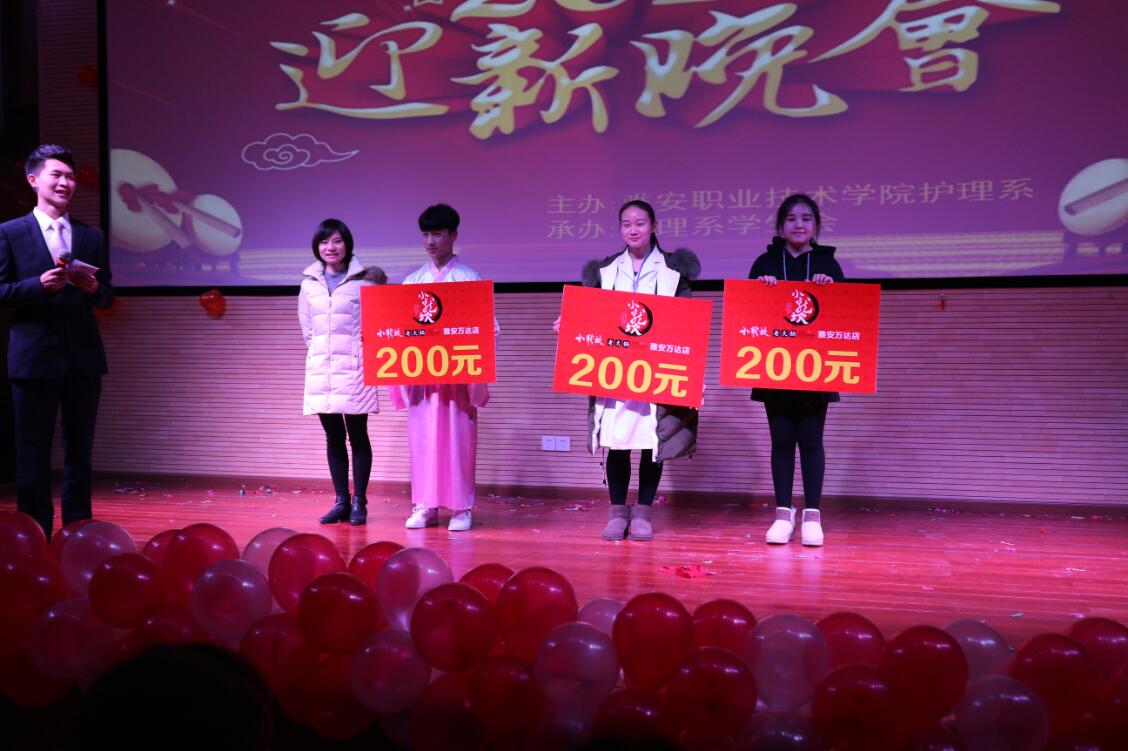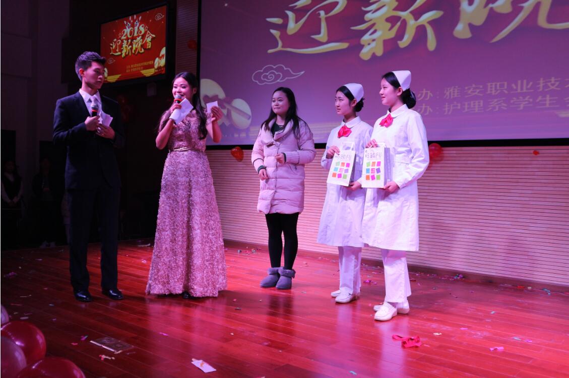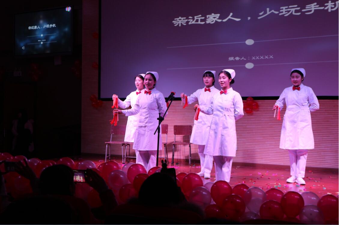 【本网讯】12月26日晚,护理系主办的 “护梦启航,以心迎新”2018迎新年晚会在青年路校区多功能厅举行。系团总支书记万黎、副书记吴玉阳以及教师代表饶玲、邓蓓等应邀出席本次活动并担任评委。护理系全体师生参加。