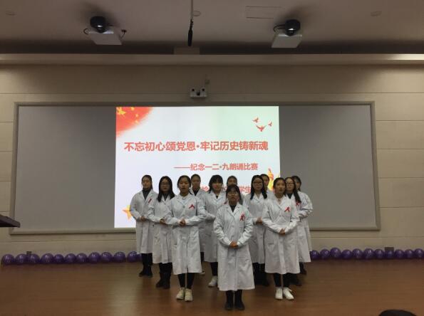 【本网讯】为纪念“一二•九”爱国学生运动82周年,丰富校园生活,培养青少年的爱国精神,12月5日下午,药学检验系团总支学生会在实训与服务中心2204教室举行了主题为“不忘初心颂党恩•牢记历史铸新魂”的一二•九朗诵比赛决赛。系团总支书记鲜敏、团总支副书记陈静及个别学生干部担任评委。