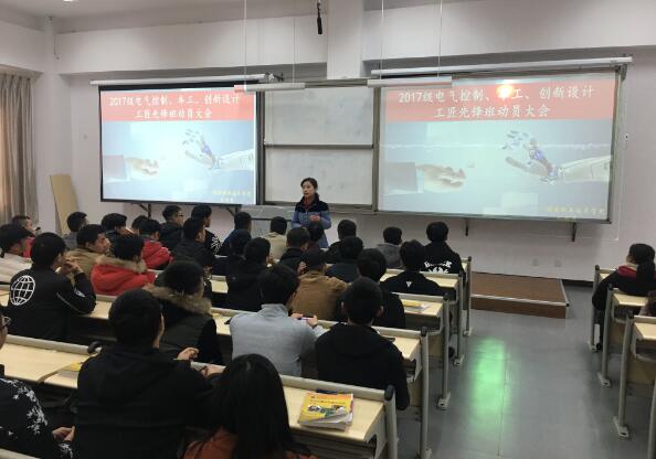 【本网讯】为持续推进工匠先锋班培养模式的探究,12月11日,2017级机电一体化、医疗设备应用技术专业班的师生在经开区阶梯教室1204召开了2017级工匠先锋班组班动员大会。