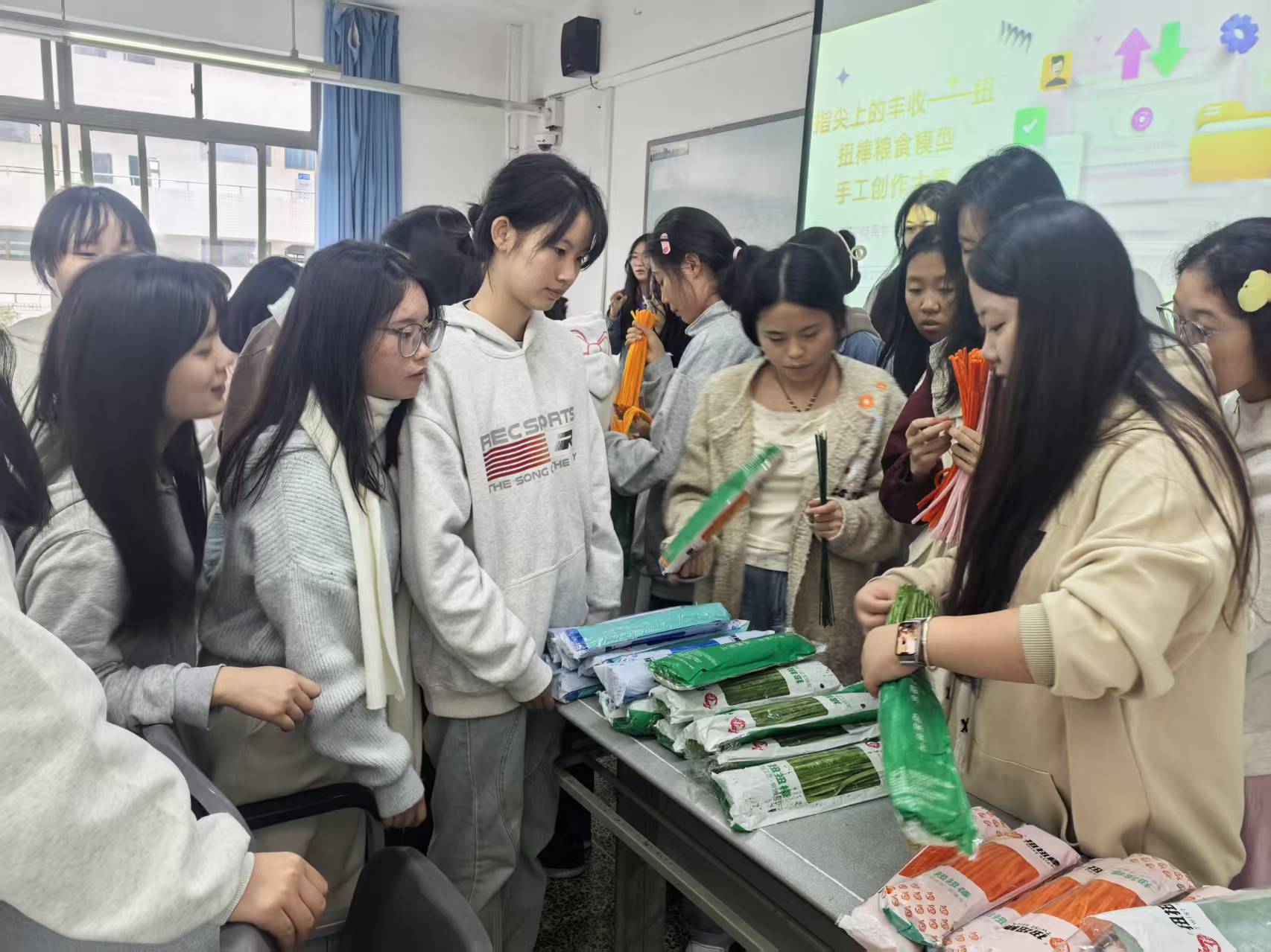 以创意实践传递节约理念。宣传周策划开展了两项兼具竞争性与趣味性的主题竞赛,引导学生深度参与粮食节约教育。一是开展“粮心记录・节约有我”随手拍视频大赛,共征集到100余名同学创作的30余部作品,同学们通过镜头记录食堂光盘场景、传承农耕文化细节、警示粮食浪费现象,以影像生动传递节约理念与粮食安全的重要性;二是开展“指尖上的丰收”扭扭棒粮食模型手工创作大赛,吸引了90余名师生参与,大家亲手制作水稻、小麦等作物模型,在感知粮食形态之美与地域文化意涵的动手过程中,深化了对“粮食来之不易”的情感认同。两项竞赛活动将教育意义融入实践,有效提升了学生的参与度。
