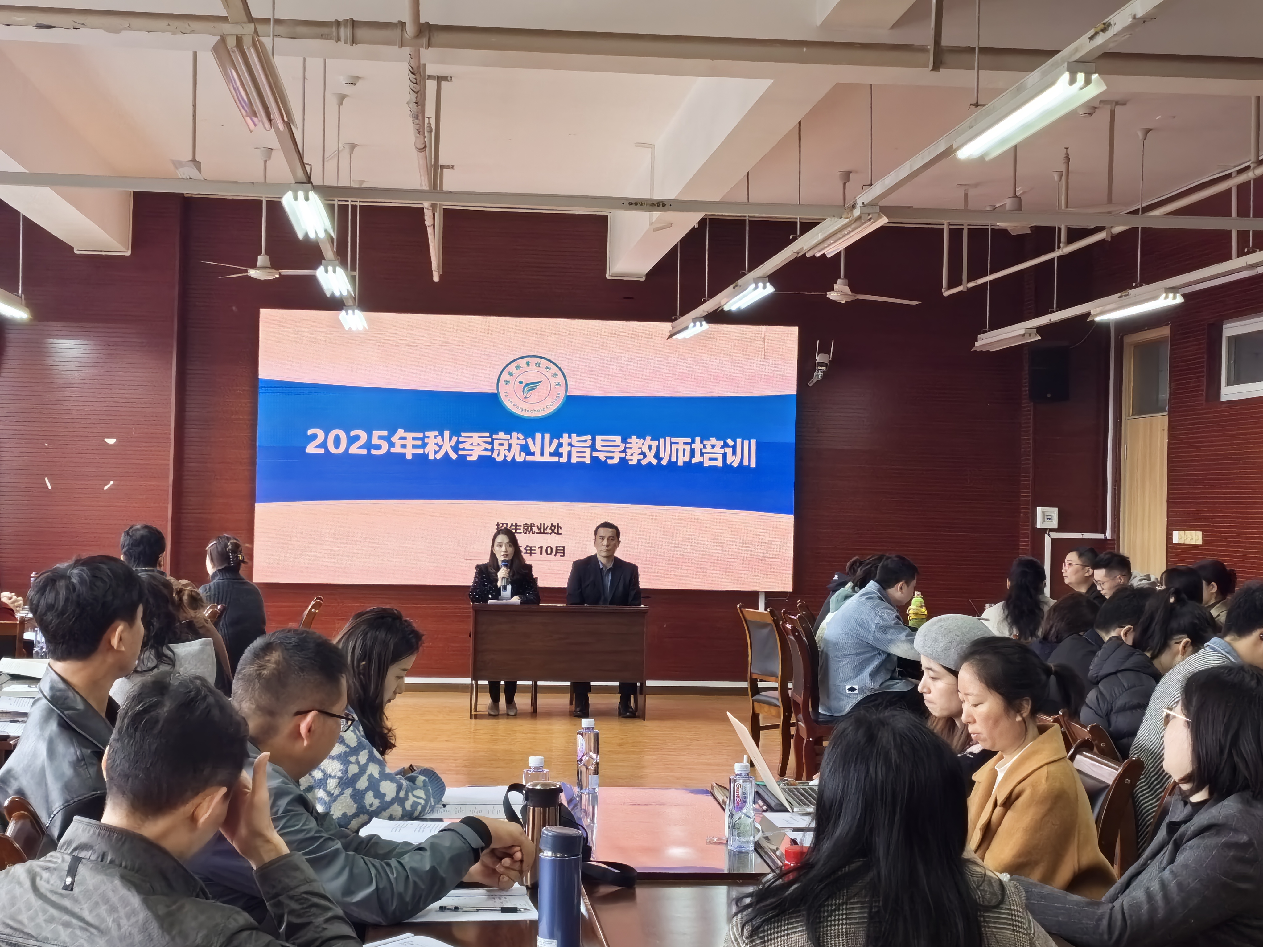 10月25日至26日,学校2025年秋季就业指导师资培训在青年路校区图书楼1103举办。来自全校各涉生二级学院的50名辅导员、班主任、专业负责人及就业帮扶相关教师参加培训。
