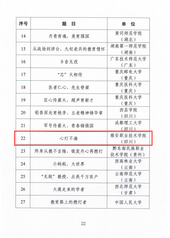 日前,教育部关工委公布了2025年“读懂中国”系列活动评审结果。我校凭借出色的组织工作和高质量的作品创作,斩获双重荣誉——微视频作品《心灯不渝》获评“优秀微视频”,学校荣获“2025年‘读懂中国’活动表扬单位”称号。