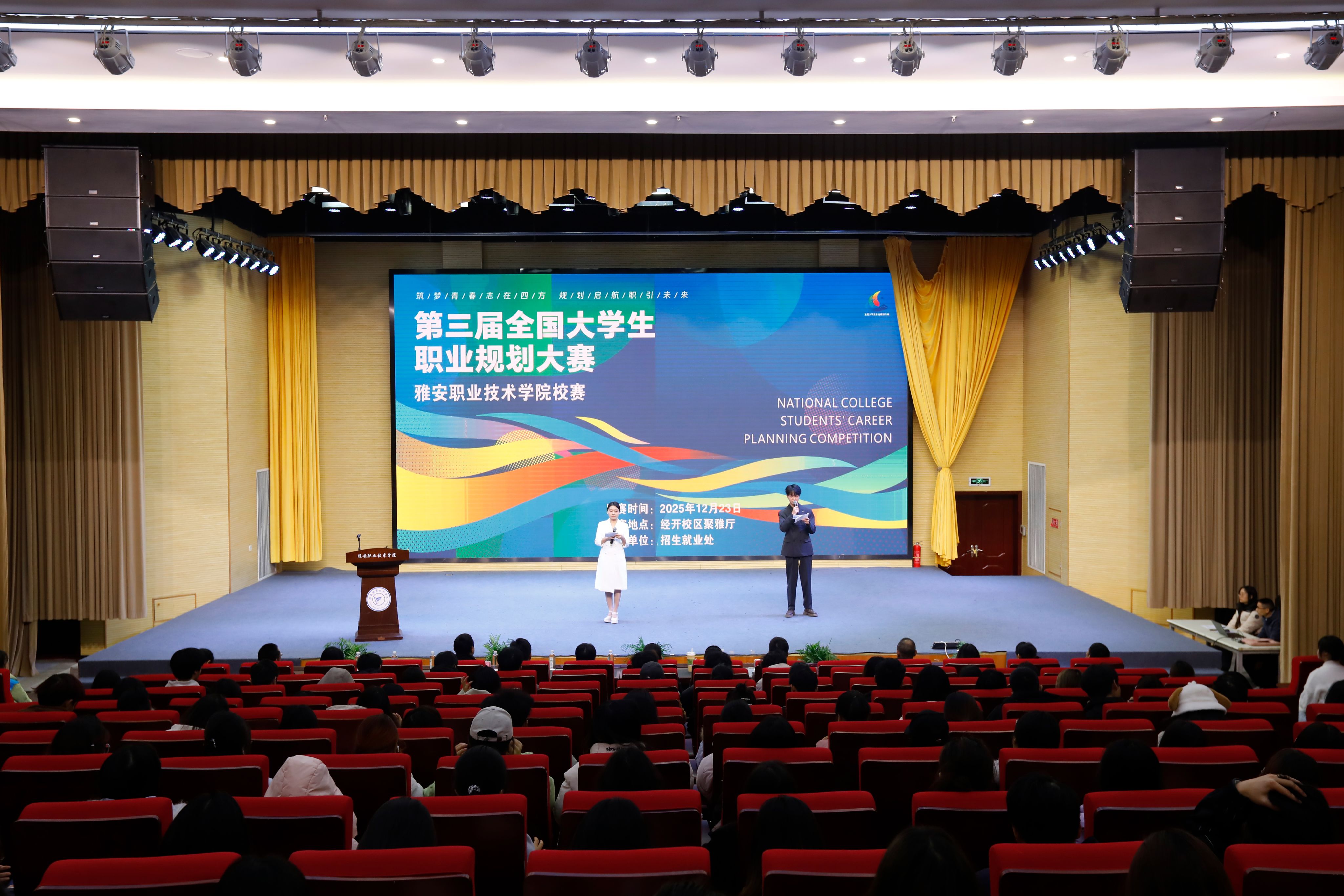12月23日,学校第三届大学生职业规划大赛决赛在经开校区聚雅厅举行。学校党委常委、副校长樊先茂出席活动,招生就业处、团委、产教融合处、各二级学院相关负责人、师生代表及来自行业的评审专家、企业代表共同参加了本次活动。