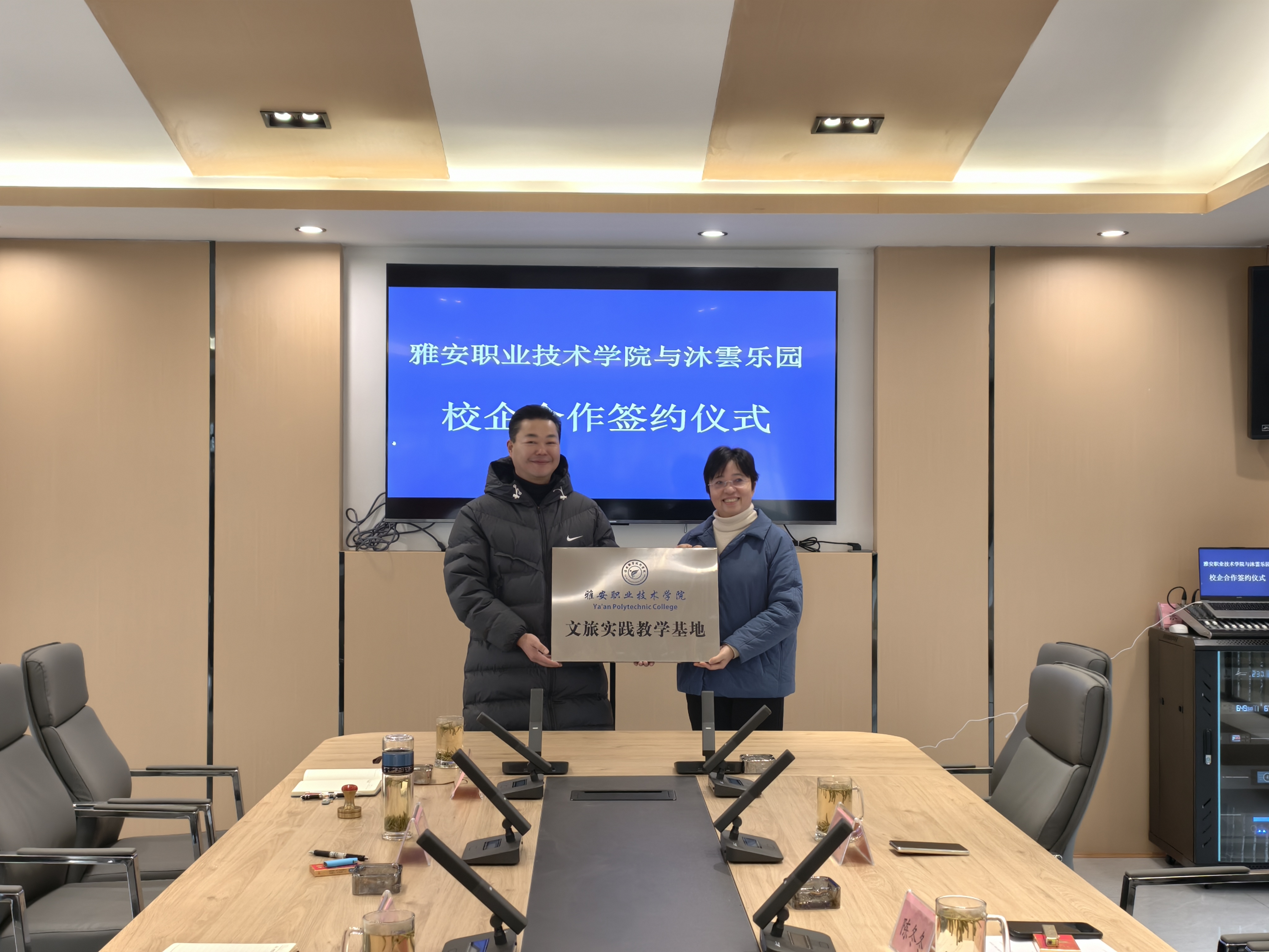 仪式现场,彭裕红与胡军代表校、企双方,正式签署了《校企合作框架协议》。随后,在与会嘉宾的共同见证下,为“雅安职业技术学院文旅实践教育基地”授牌。该基地将作为连接课堂教学与产业实践的重要平台,助力文旅人才培养与地方产业需求深度融合。