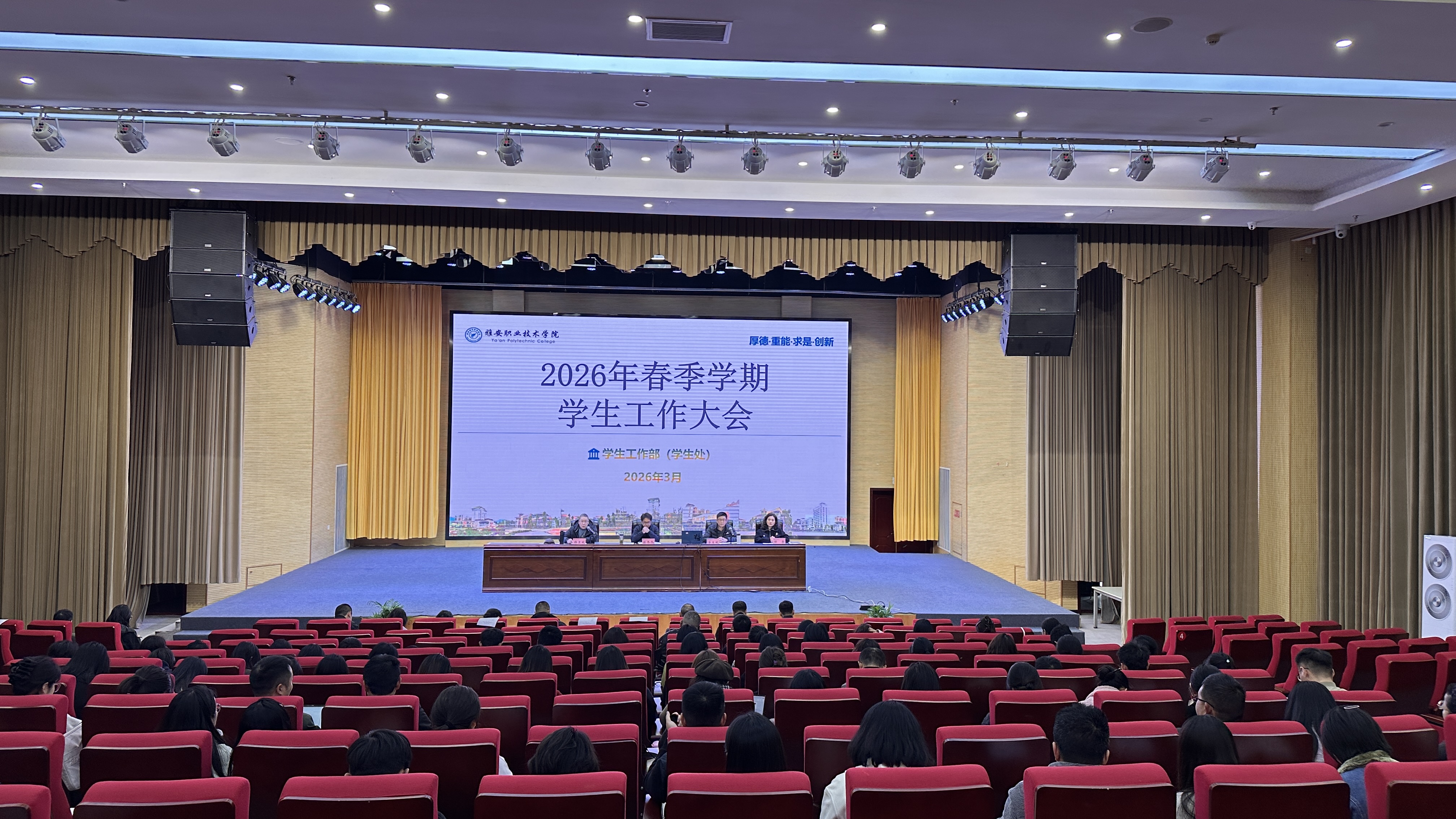 3月10日,学校在经开区聚雅厅召开2026年春季学期学生工作大会暨辅导员专题培训会。党委常委、副校长陈冬冬出席会议并讲话。学生处、团委、保卫处相关负责人,二级学院分管学生工作领导、全体辅导员及班主任、心理健康教育中心教师等100余人参加会议。会议由学生工作部部长、学生处处长徐维主持。